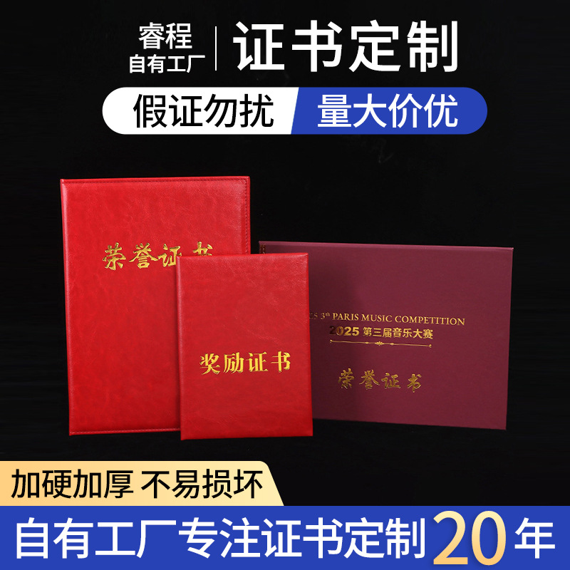 PU皮質箔押し栄誉証明書企業学校受賞賞状証明書研修修了証明書内ページ可