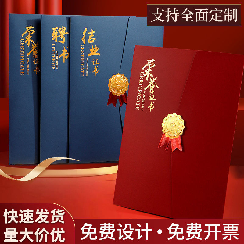 箔押し栄誉証明書修了証明書ケース表紙収蔵訓練賞状合格証明書ケースカスタマイズ