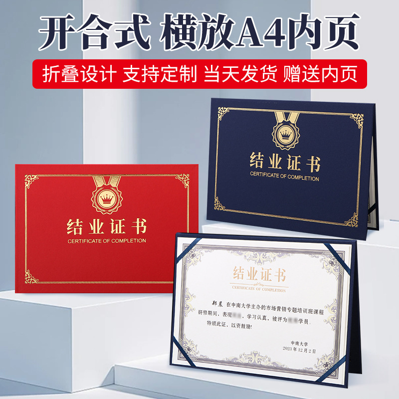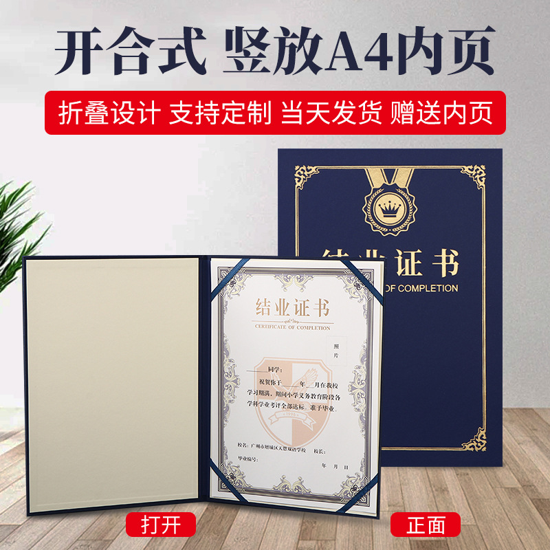 修了証明書メーカー現物卸売り珠光フロスト金証明書の結納書のケースはa 4内芯内ページに印刷します。