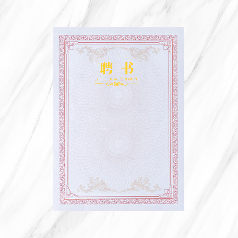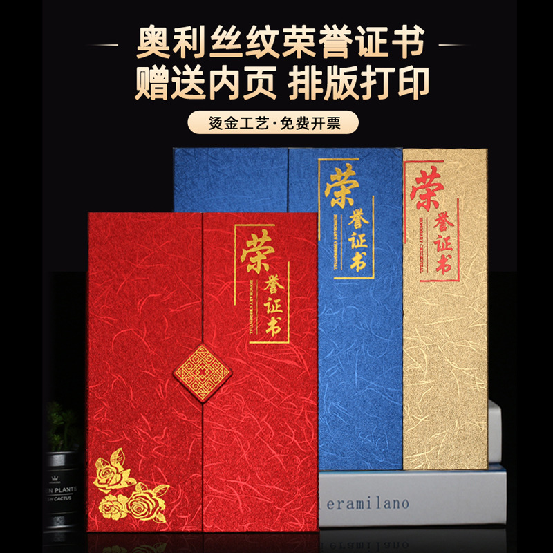 縦版空白栄誉証明書カスタム証明書内芯紙箔押し印刷ブランドロゴ箔押し内ページカスタムcx