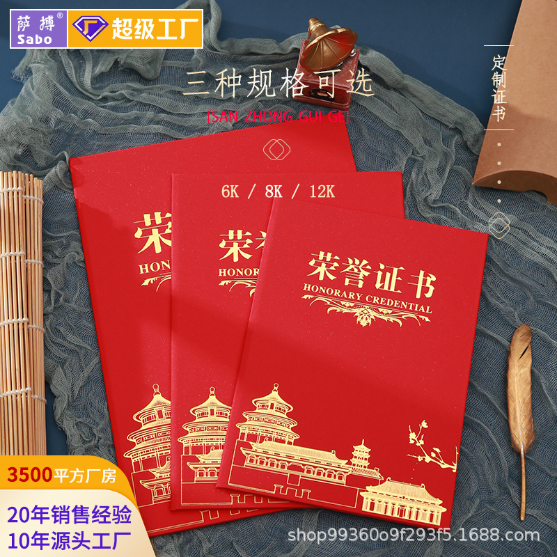 卸売レッドブロンズ名誉証明書 8k12k 任命状証明書インナーページスポット学校卒業証明書シェル