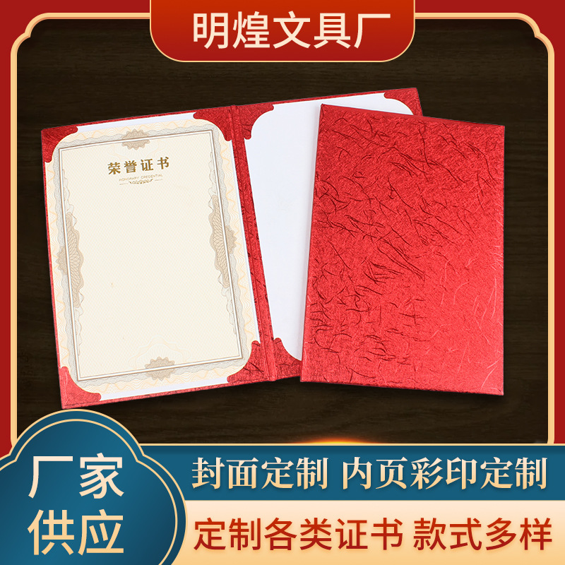 A 4栄誉証明書赤色珠光フロストa 4繁体字証明書片面証明書シングルページ結納書カバー卸売り