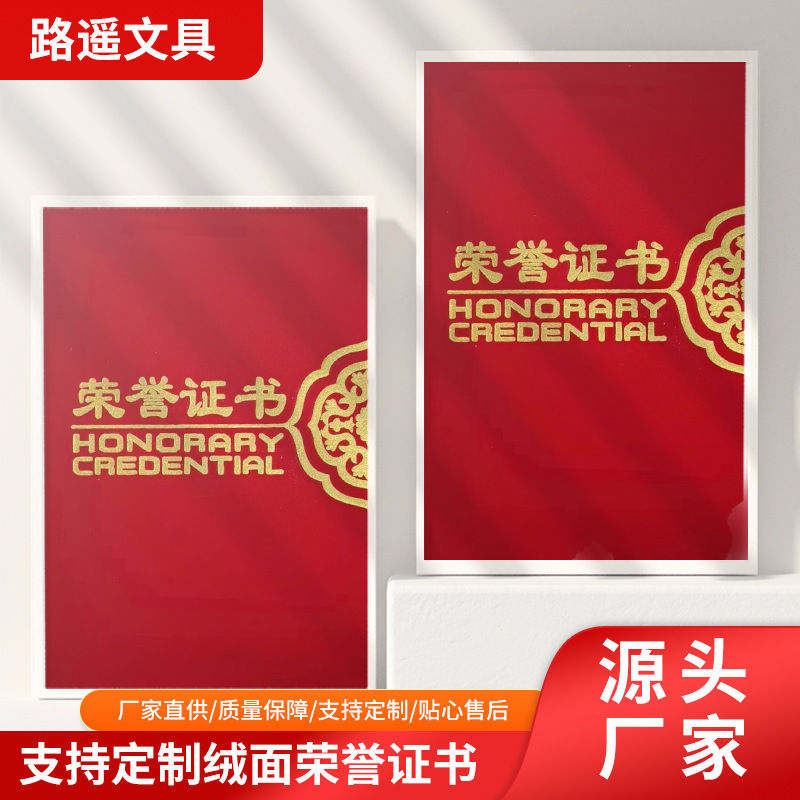 栄誉証明書高級ベルベット証明書ベルベット2色箔押し証明書カスタム賞状証明書ケース内芯印刷