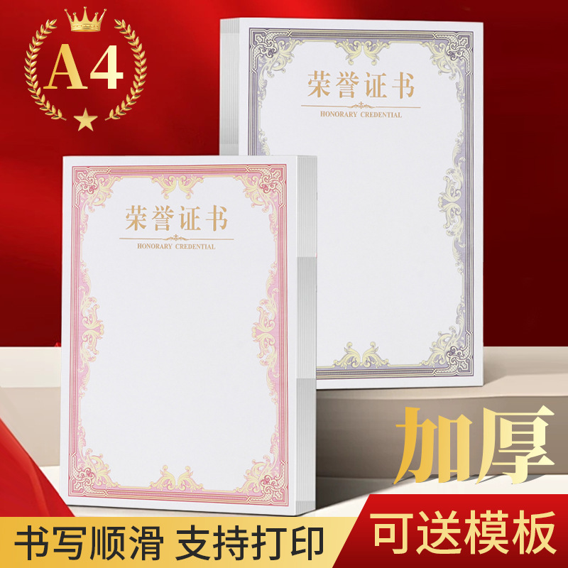 A4の栄誉証明書を厚くして修了した結納書は、空白の賞状を印刷して受賞することができます。