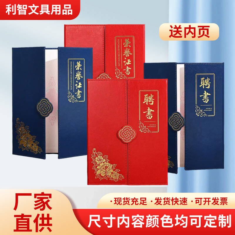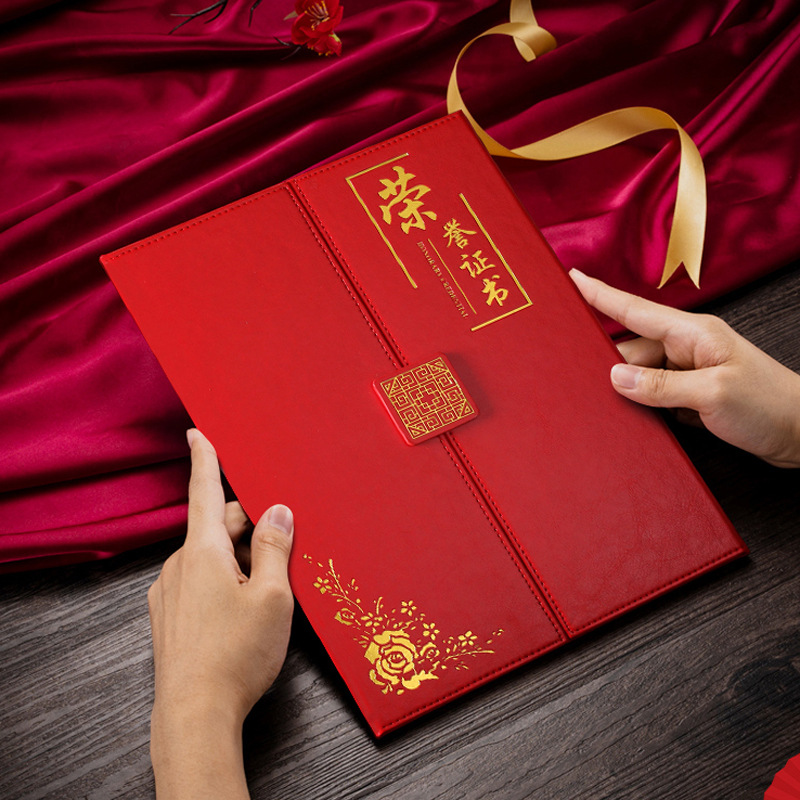 中国風コレクションシェルカスタム証明書二つ折り革箔押しカスタマイズ可能