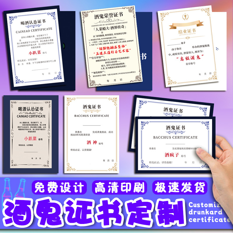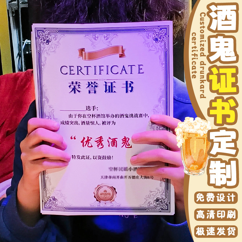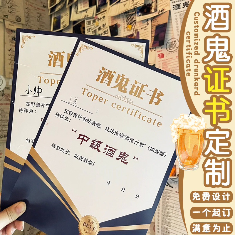 酒好き証明書カスタマイズされた居酒屋広告キャンペーンクリエイティブカードデザインバーチャレンジ名誉証明書カスタマイズ