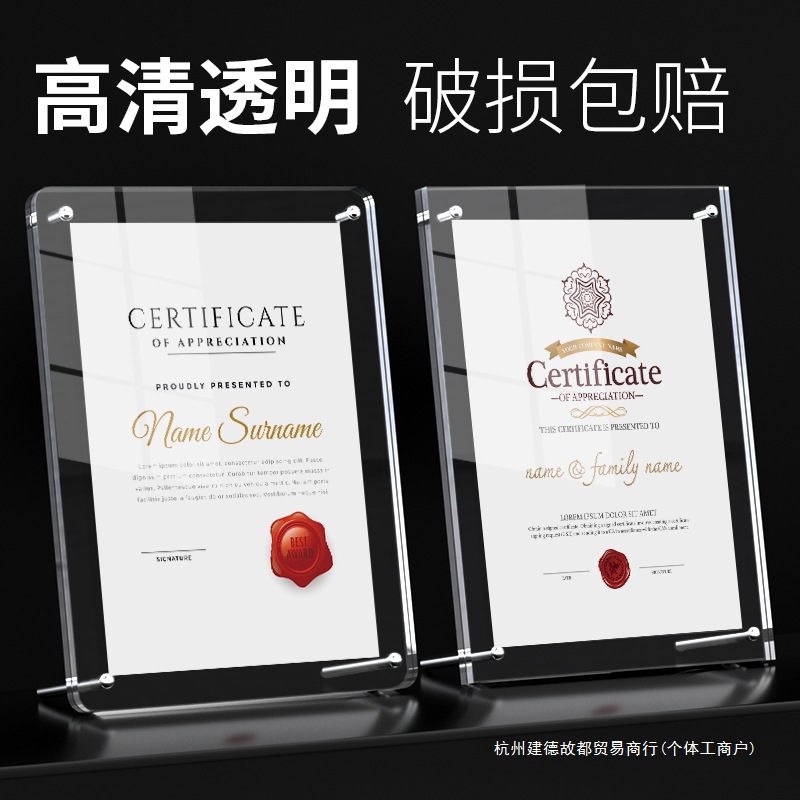 アクリル名誉証明書フォトフレーム賞状ディスプレイフレーム就任状賞コレクション寄付研修卒業証明書