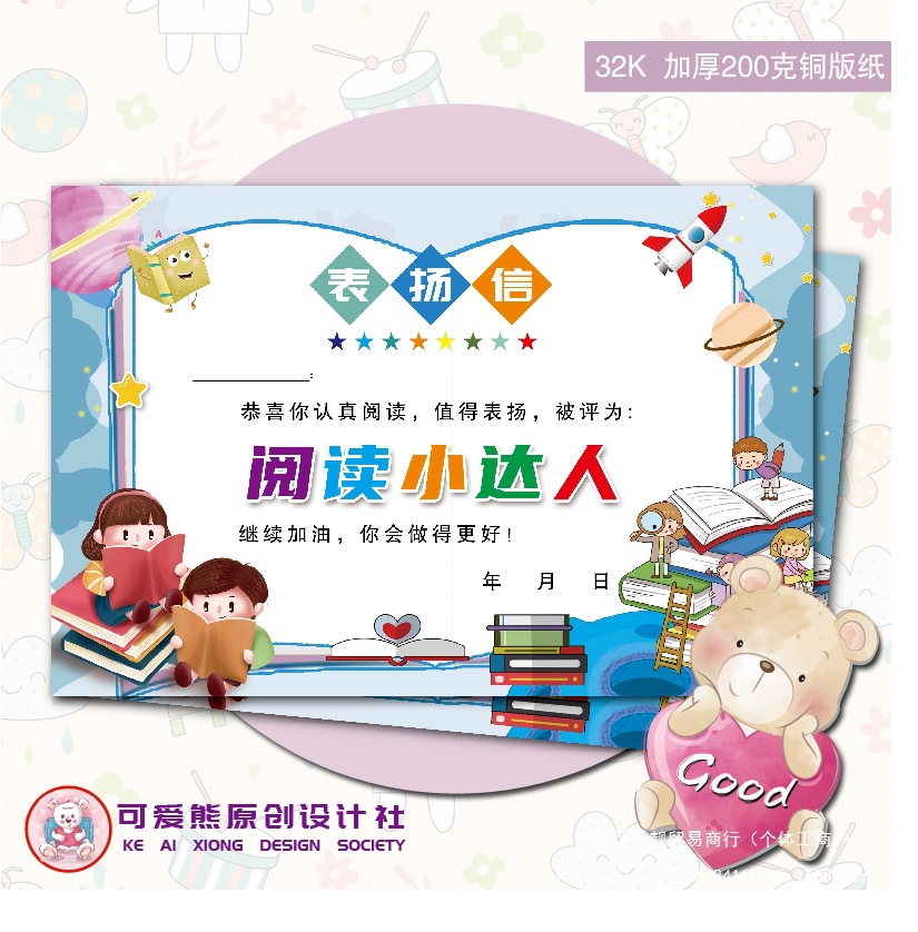 A5 読書スター 読書の日 ほめ状 小さな賞状 小学生 クリエイティブ 小学生 ほめ状 喜報 ほめカード
