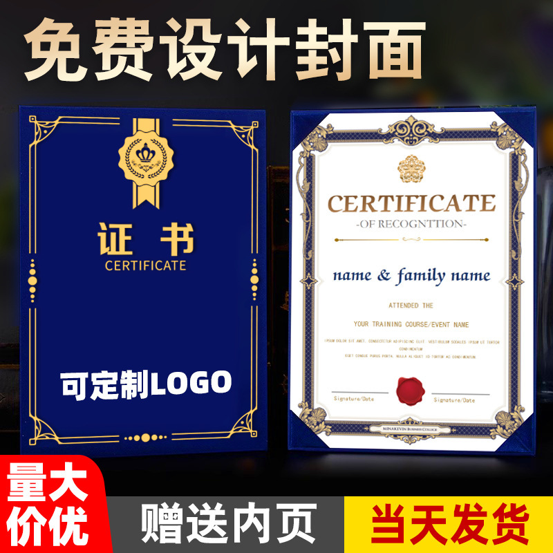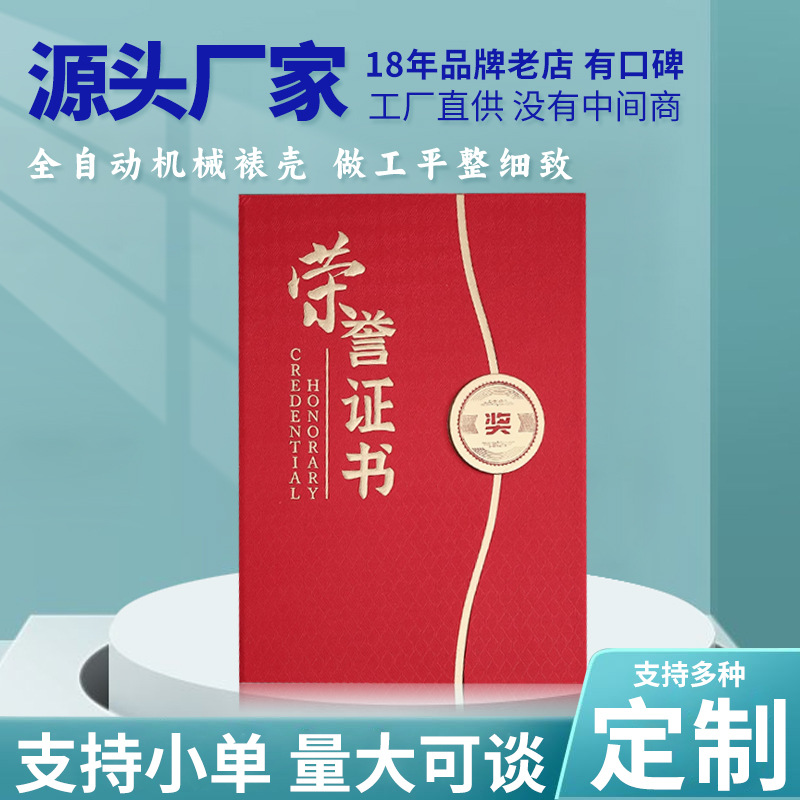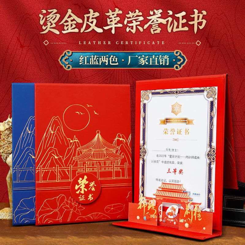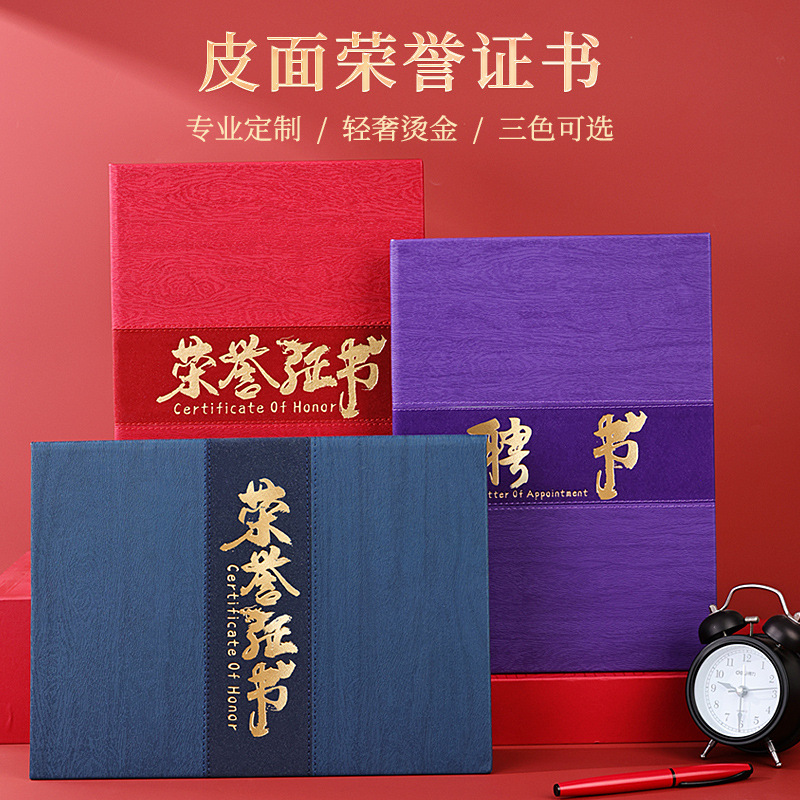 皮面a4栄誉証明書カスタム結納書修了証明書国潮風賞状皮革ケースカスタム受賞証明書