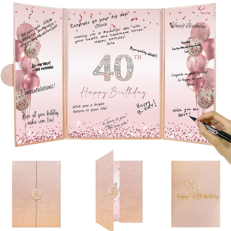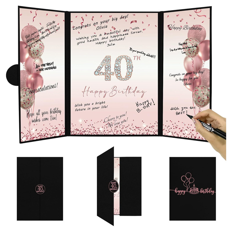 ローズゴールドブラック誕生日サインインカードボード外国貿易アマゾンパーティー用品サインインブック40歳の誕生日パーティー