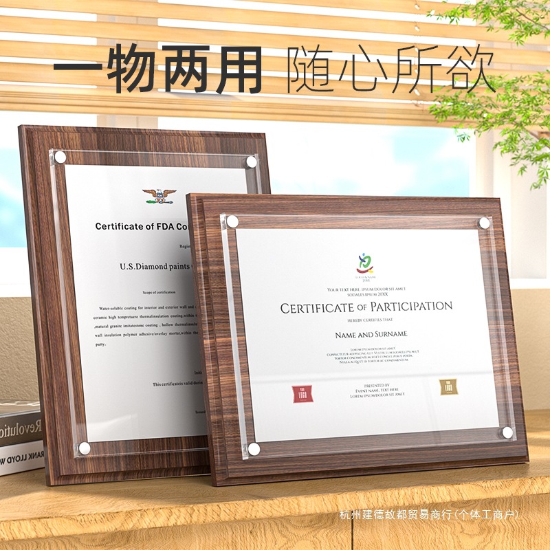 A4名誉証明書フレーム無垢材フォトフレーム特別な高級特許証明書表示カードジュエリー鑑定認定書就任状