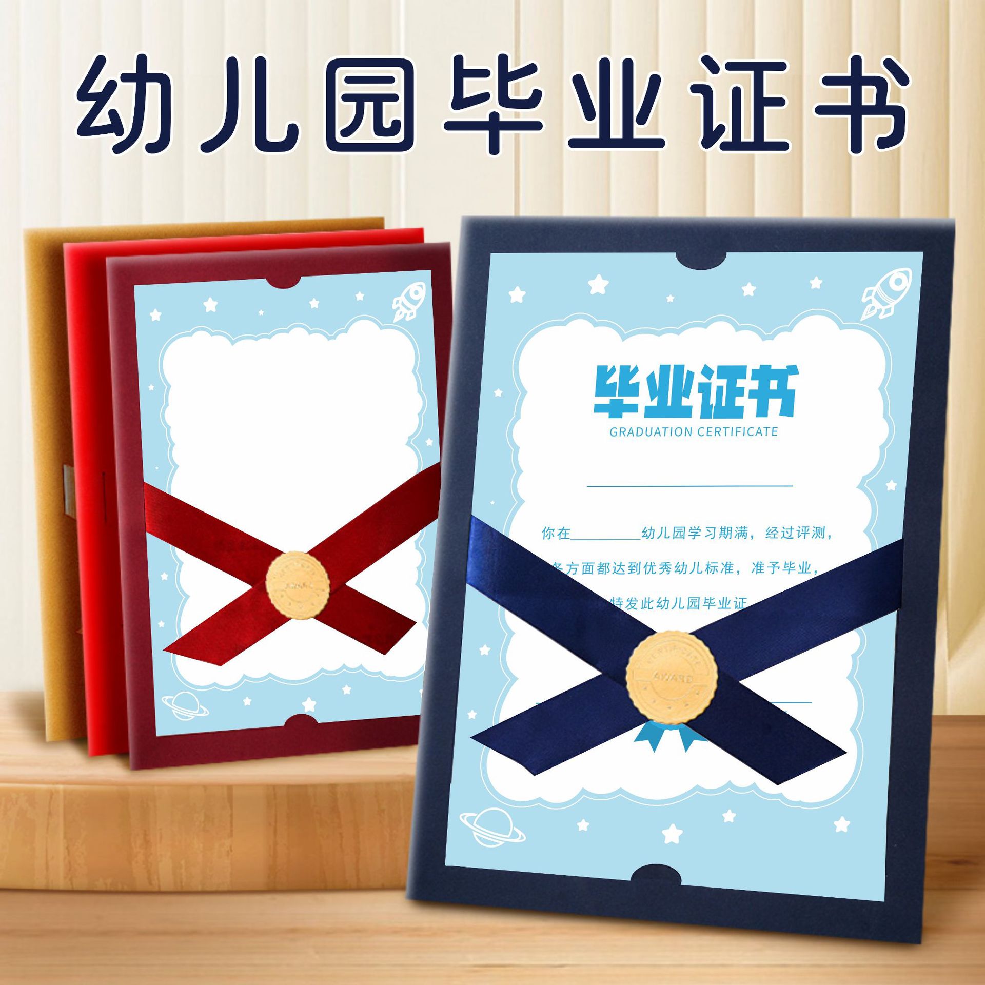 幼稚園卒業証書、大クラス卒業カバー、カスタマイズされたロゴ、幼稚園ロゴ、漫画賞状、卒業ギフト