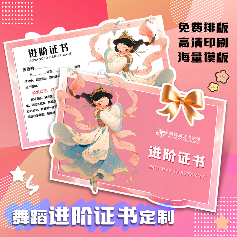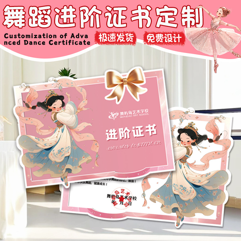 ダンス上級証明書カスタマイズ個別指導クラスご褒美ギフトカードデザイン課外趣味トレーニングクラス証明書印刷