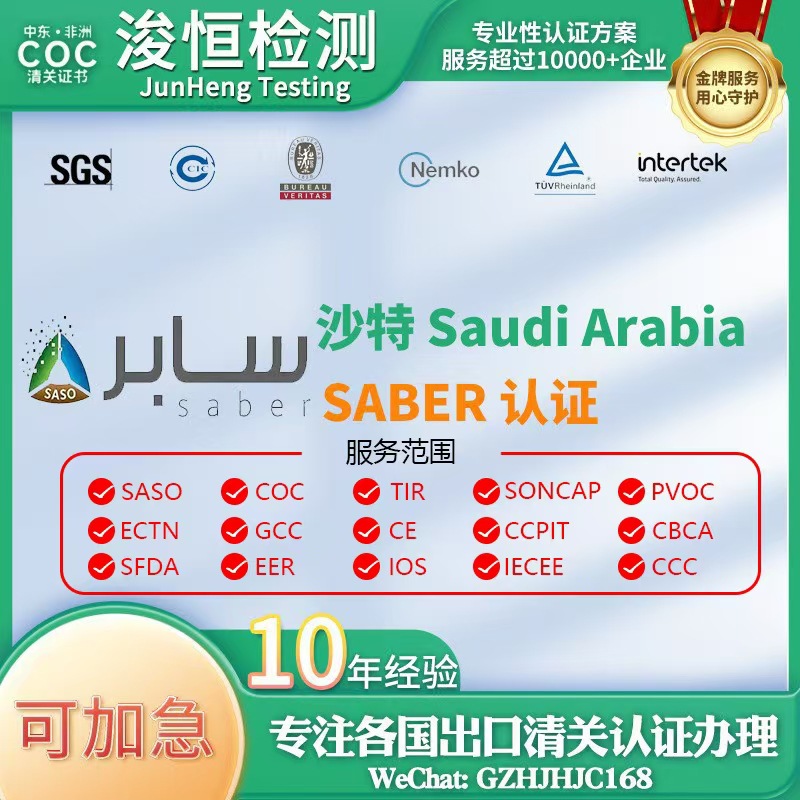 セイバー/SASO/TIR/PVOC/SONCAP/ECTN/GCC/CE/SFDA/IECEE/COC認証