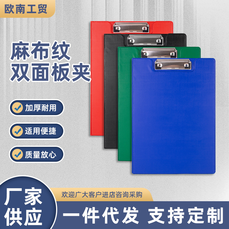 欧南A4 FC A5麻布紋多色両面板クリップ紙ファイルクリップ学生筆記パッド