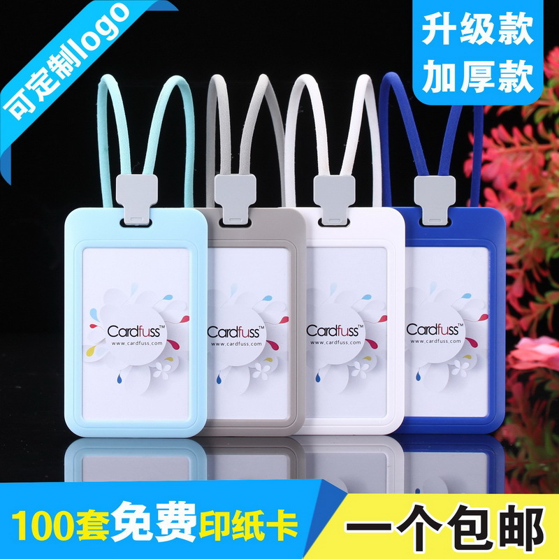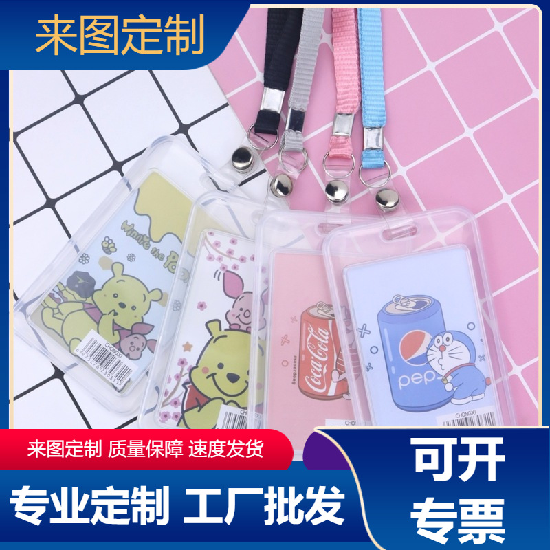 作業証明書カードカバーストラップ付き透明従業員入証工ブランドpvcハードシェルゴムカバー学生学校ブランドカバー