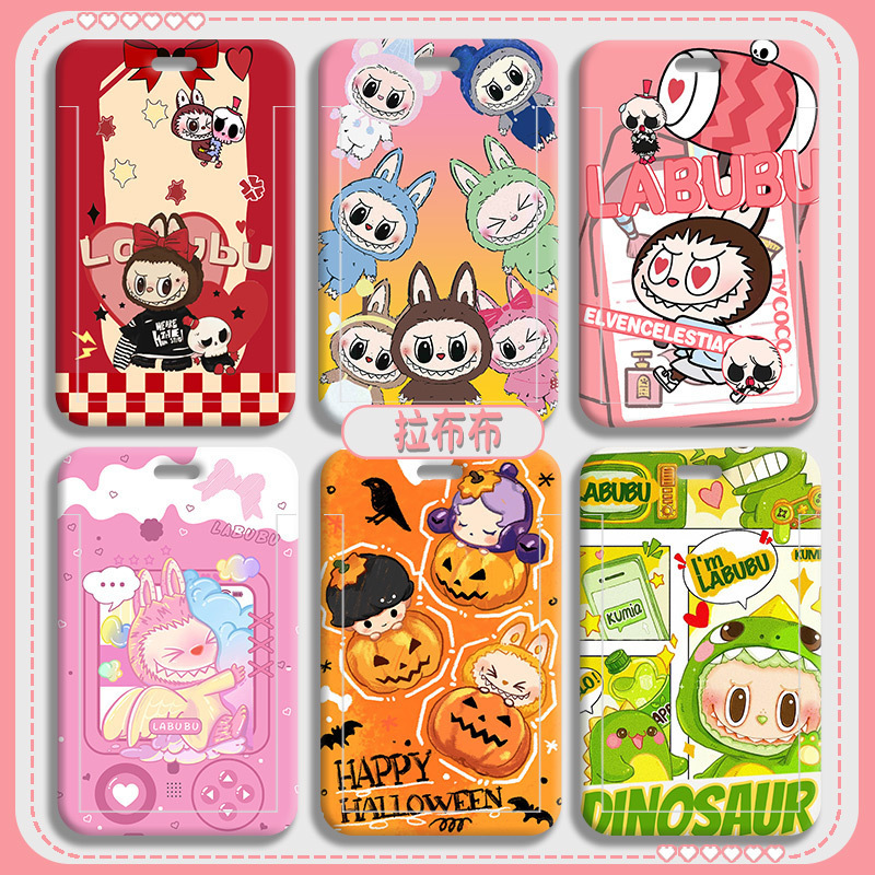 LABUBU スライドカードホルダー ランチカード バスカード IDカード保護カバー ファクトリーブランド ドアカードホルダー キーホルダー