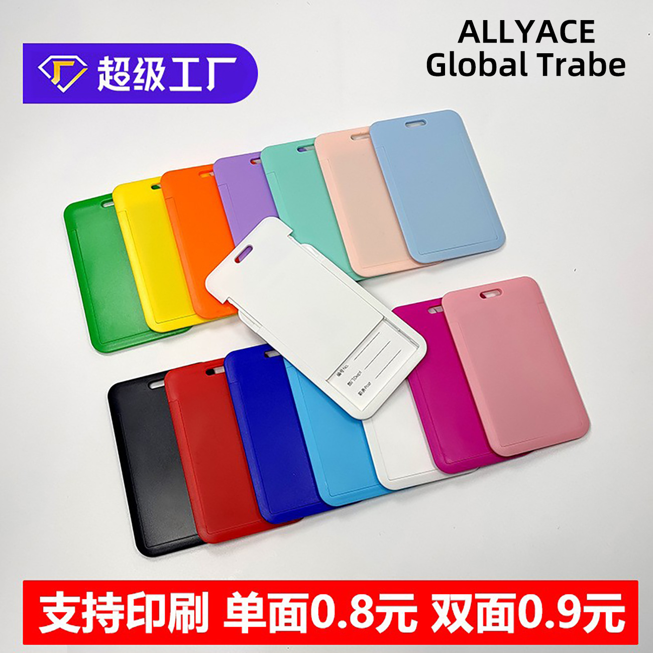 空白スライド式蓋押し合硬カードカバーABSプラスチック胸札作業証従業員工牌漫画カラー大サイズカードカバー