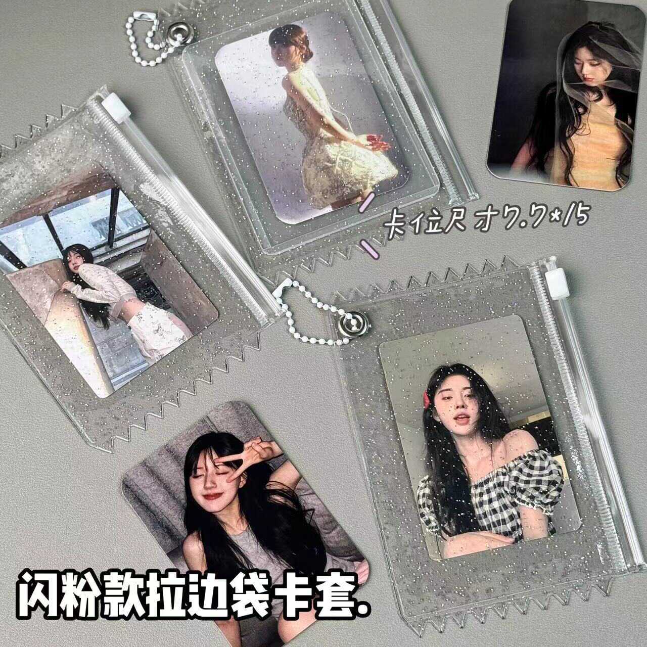透明グリッター収納袋、小さなカードバッグ、谷美小道具ディスプレイ、PVC エッジ 3inch 小さなカードバッグ、カードホルダーペンダント
