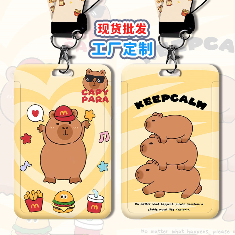 漫画カードカバーかわいいストラップ付き仕事札バッジバス地下鉄カード保護学生食事カード従業員ドア禁止カード