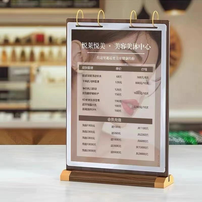 アクリル胡桃木実木メニュー展示カードテーブルカードカフェミルクティー店メニュー標識