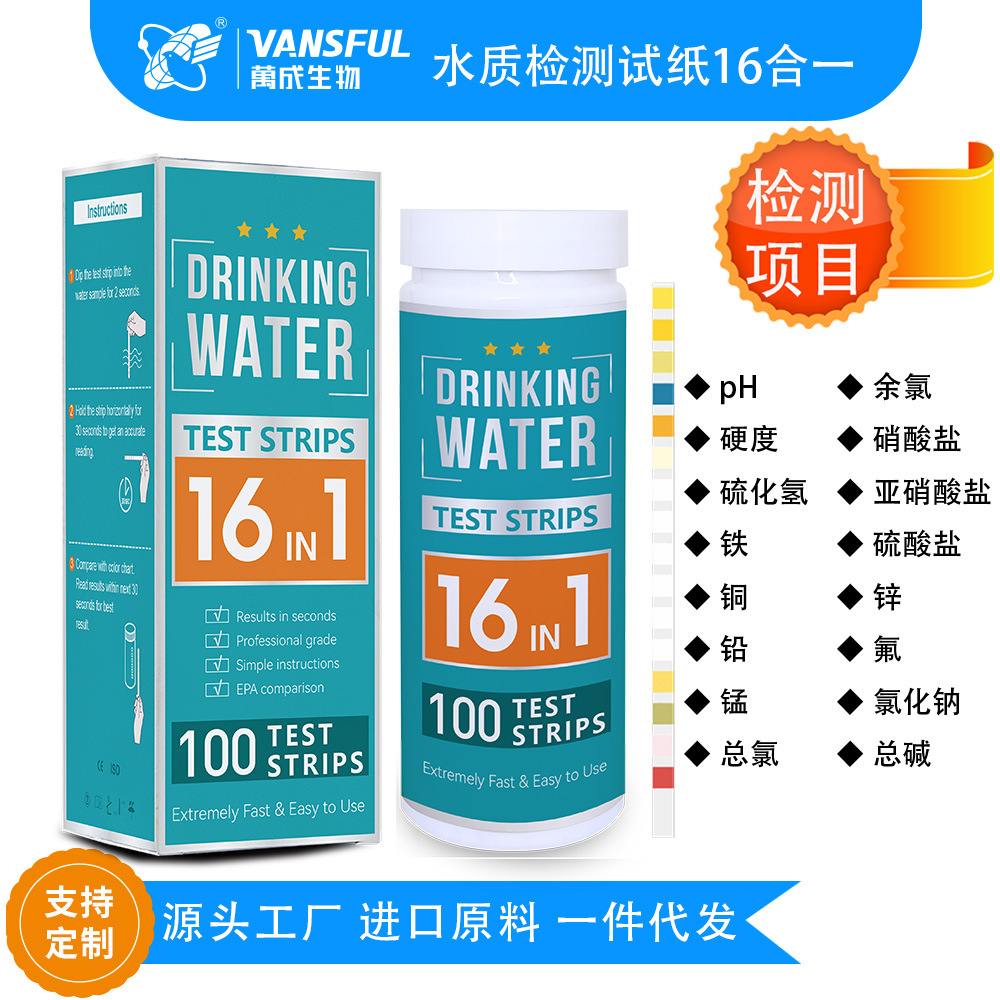 クロスボーダー電気商輸出水質検査試験紙16合一飲用水水道水魚塘水汚水サポートo dm
