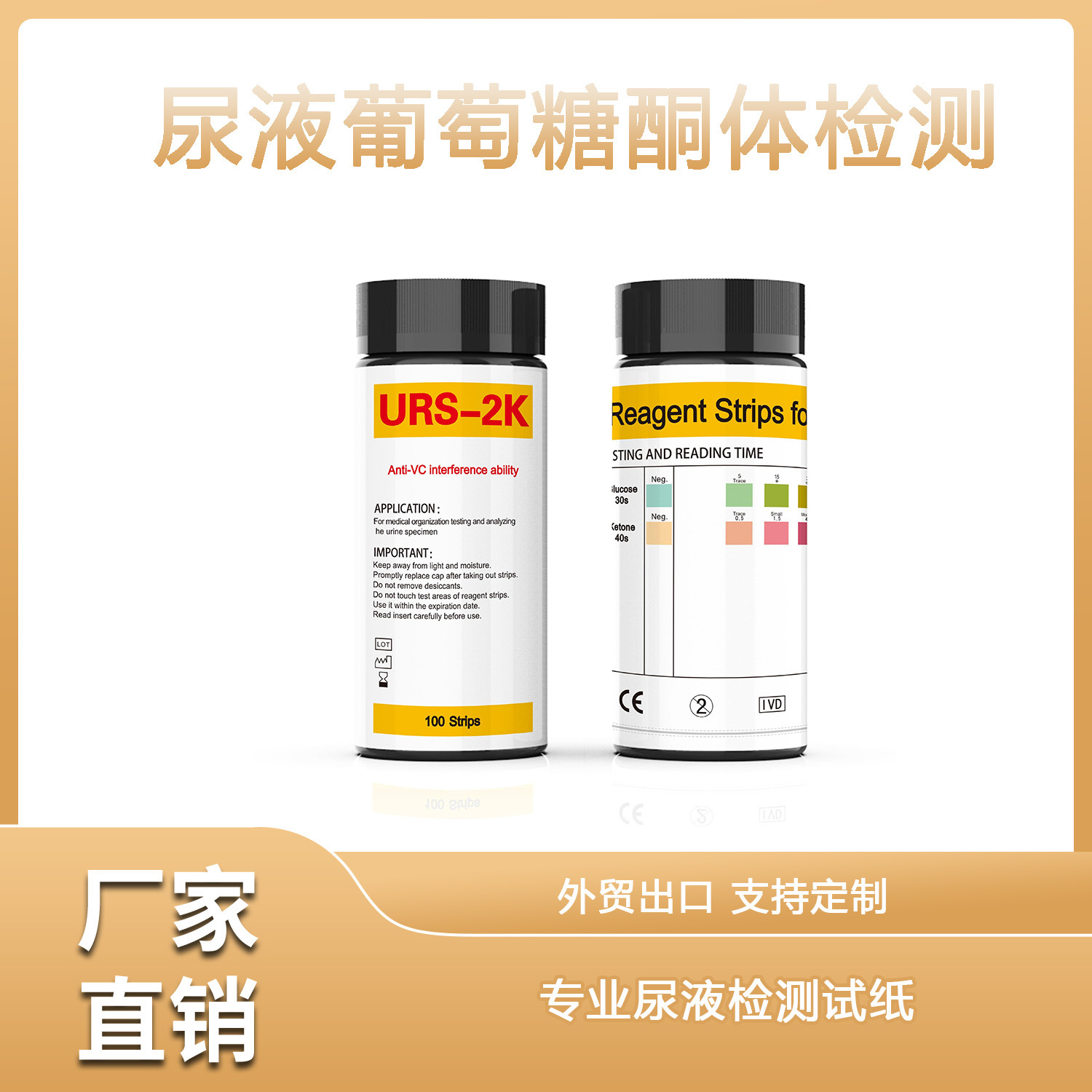 尿2項目ブドウ糖ケトン体検査試験紙尿常規快速検査工場直売対外貿易金