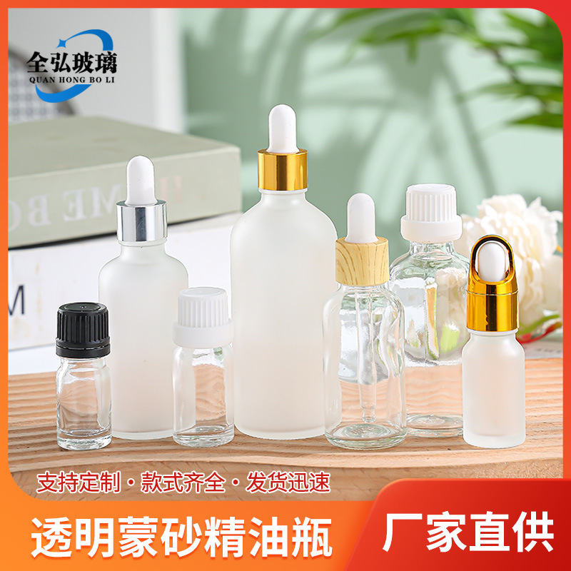 現物5-100ml透明蒙砂ガラス精油瓶ゴム滴管分注瓶化粧品瓶小サンプル瓶