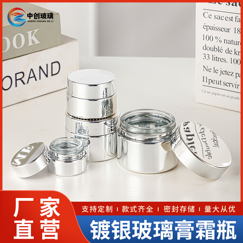 銀色の電気めっきクリーム瓶のクリーム瓶の透明なガラスのアイクリーム瓶の厚い化粧品の分注瓶のガラス瓶の30g