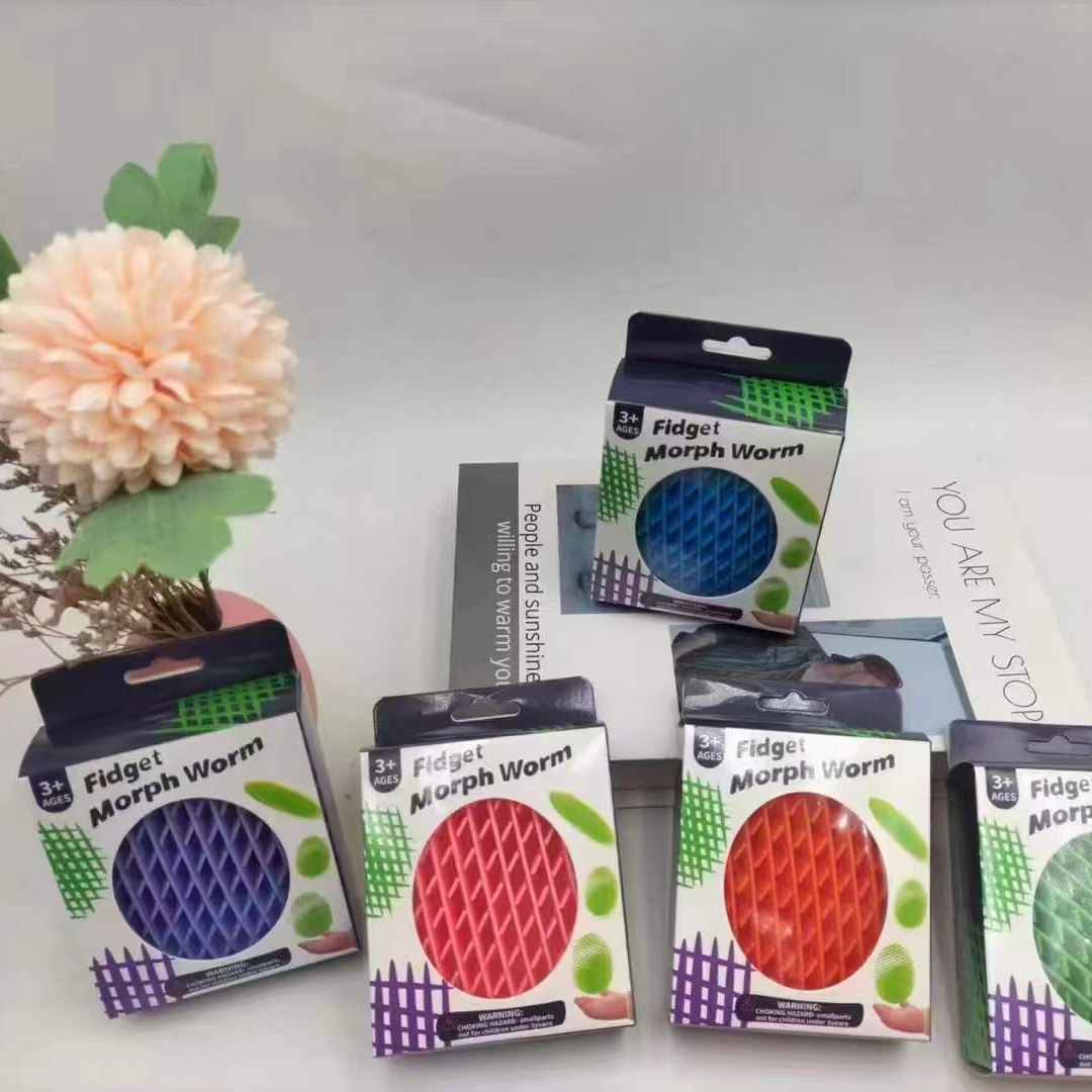 3D伸縮自在のおもちゃ、握っても伸びる、変形するワーム、新感覚、カラフルなミニボックス入り