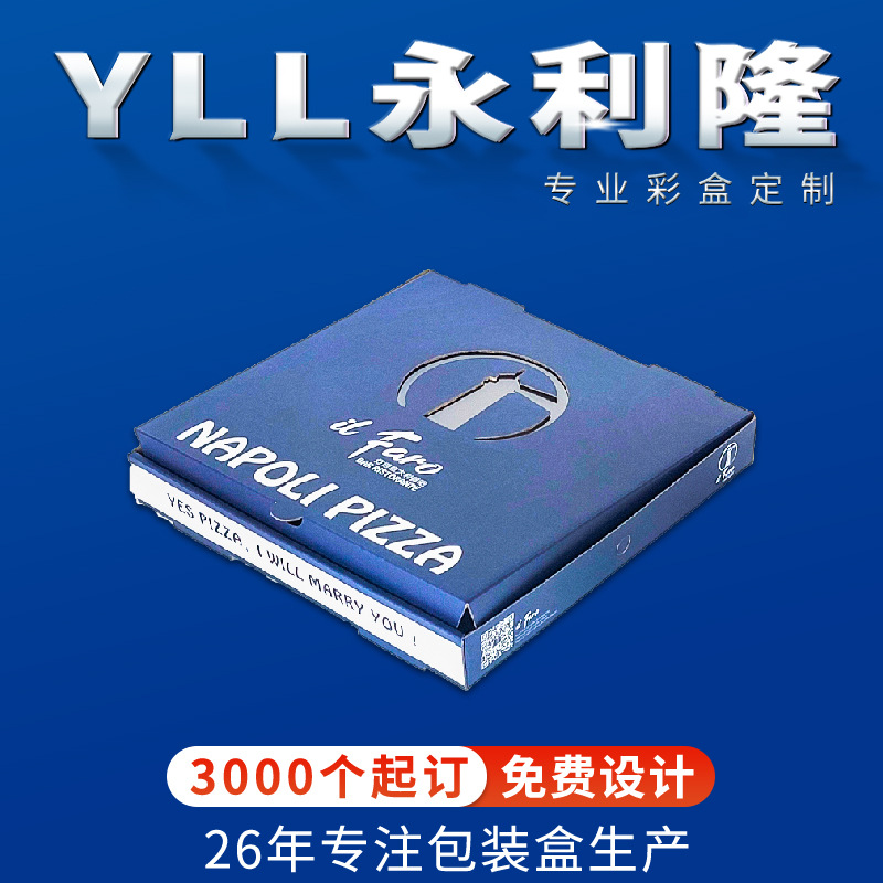 永利隆段ボール箱の光ゴム膜は表装型に白いカードの段ボール紙の全カラー印刷を厚くして、ピザ箱を梱包する