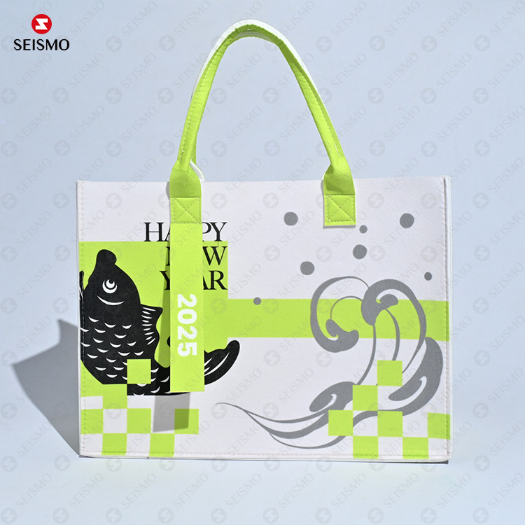 ドーパミンカラーフェルトバッグハンドバッグ印刷可能なロゴ毛糸バッグハンドバッグ大容量ホリデーギフトバッグ