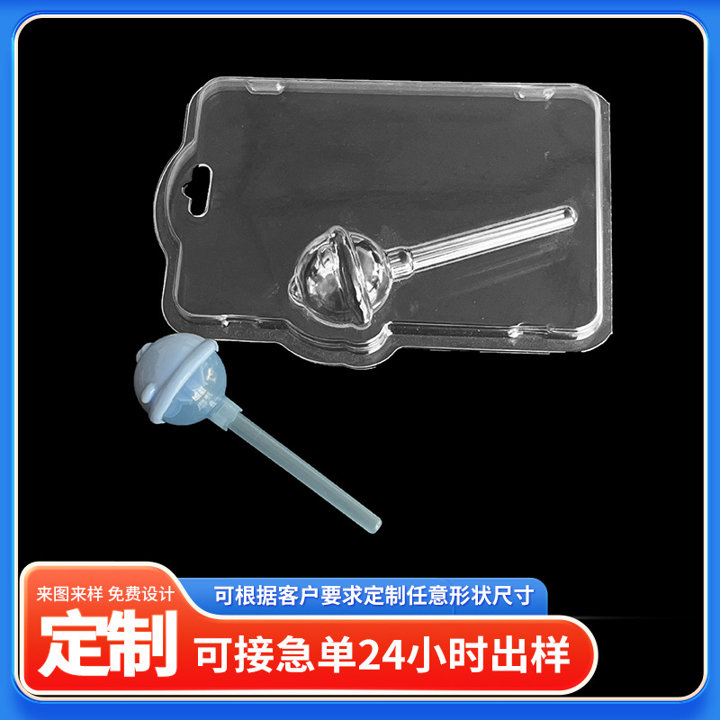 乳幼児用品のおもちゃ用透明PETブリスター包装、底面カバー付き折りたたみ包装、ロリポップ用防塵外装