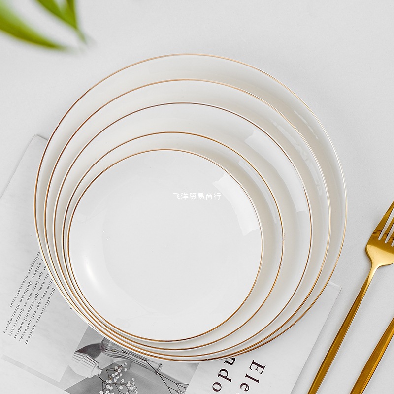 平皿 浅皿 セラミック金縁皿 骨皿 お試し皿 食器 家庭用ステーキ皿 洋食皿
