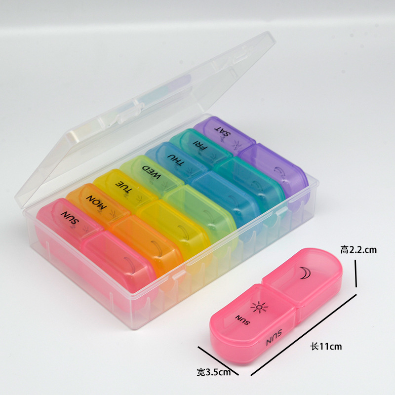 新型14格1週間薬箱クロスボーダー電気商黒21格7日間虹薬箱携帯旅行薬箱