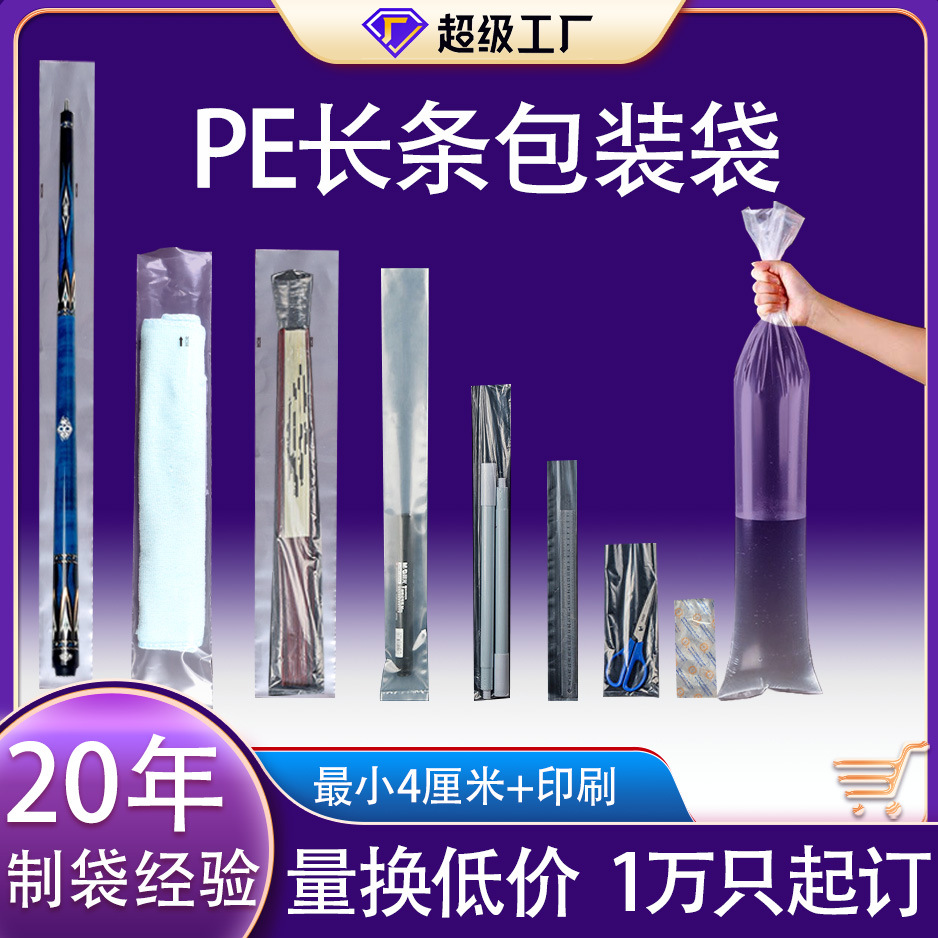 PEロングストリップビニール袋、ロングストリップ製品包装袋、平口高圧透明防塵袋、ストロー包装ビニール袋