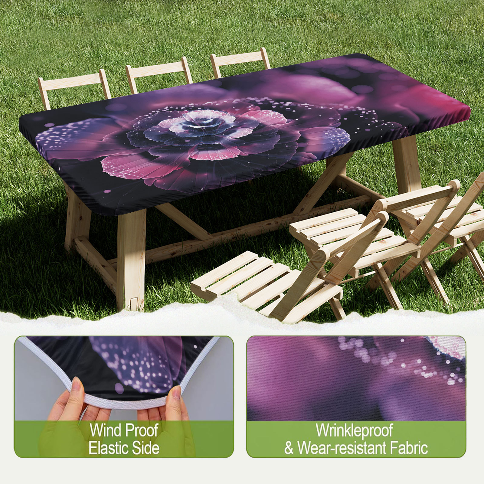 立体花クラゲ柄 防風防塵テーブルクロスカバー ダイニングテーブルクロスカバー ピクニックテーブルクロスカバー フルサークル伸縮性