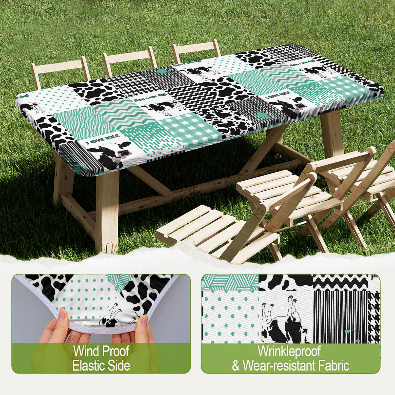 美しい牛の絵の防風防塵テーブルクロスカバーダイニングテーブルクロスカバーピクニックテーブルクロスカバー全体が伸縮性があります