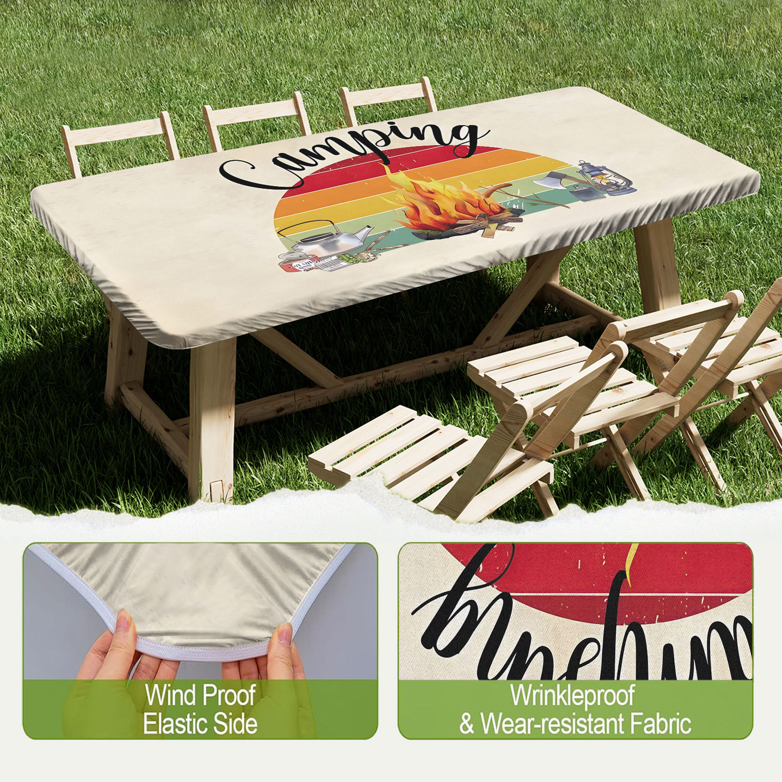 4FT/6FT/8FT キャンプテーブルクロスカバー防塵キャンプテーブルと椅子の布カバー弾性弾性布カバー、防塵