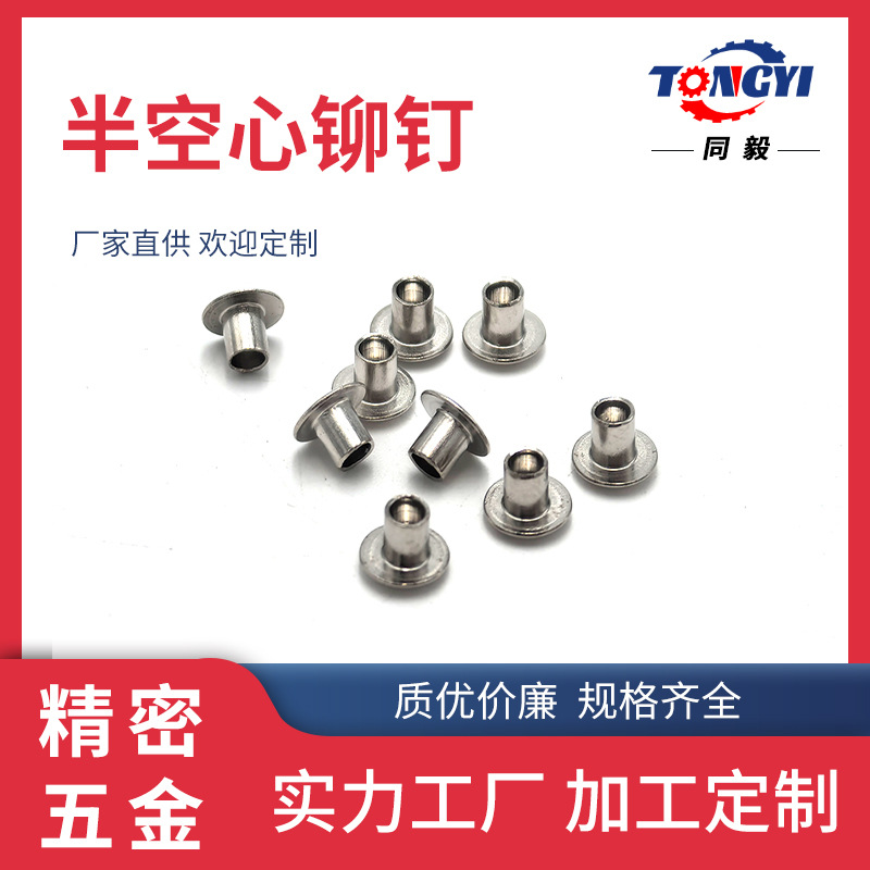 メーカー供給ファスナー鉄半中空リベット平円頭管状半中空リベットニッケル鉄柳釘メッキ