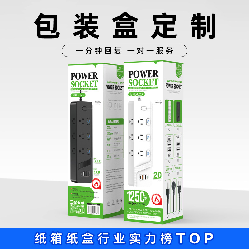 コンセントの包装箱は金属の折り畳み紙箱をカスタマイズして、プラグのイヤホンの白いカード箱を注文して、カラーボックスを印刷します。