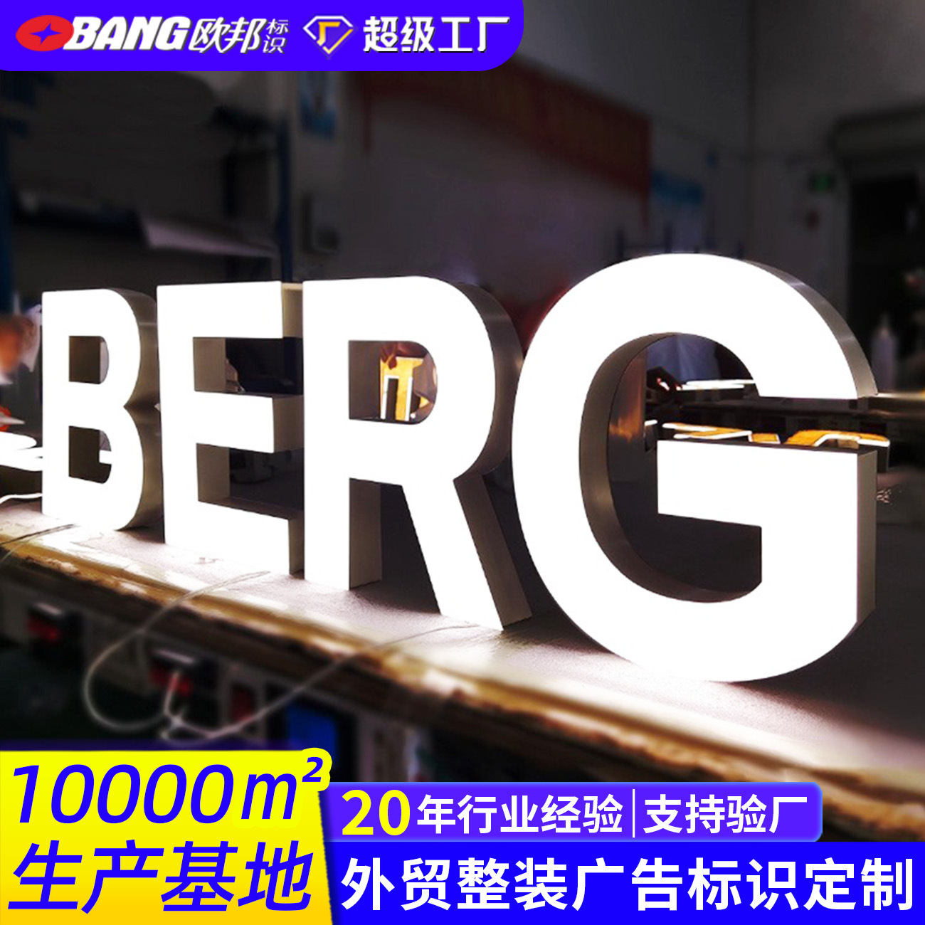 ステンレス製発光文字看板ロゴ、アクリル広告板、無枠文字屋外看板、平面発光文字カスタム