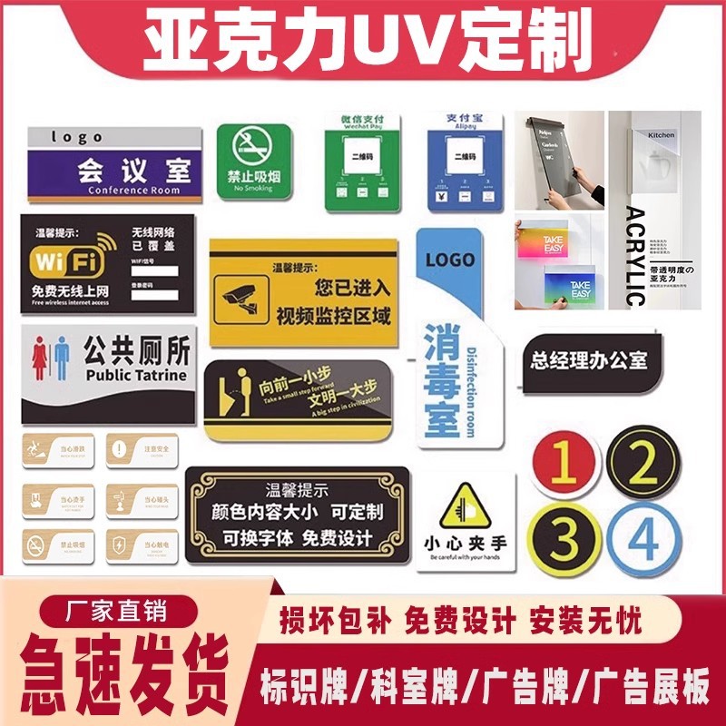 アクリルカスタム看板、UV印刷、オフィスドアサイン、部門サイン、広告警告サイン、ソースファクトリーカスタマイズ