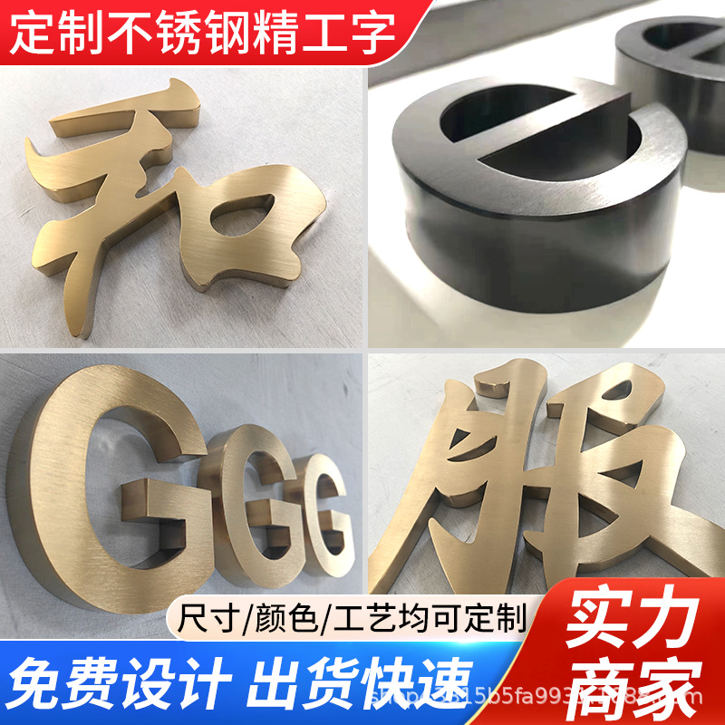 伸線/鏡面ステンレス字メッキチタン金字復古門頭看板製作ステンレス金属字カスタマイズ