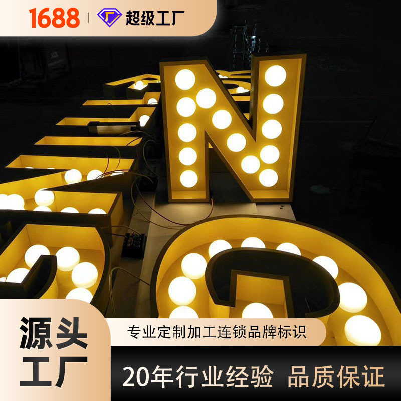 縦型アルファベット灯牌立体金属電球発光字アクリル発光字LEDステンレス広告灯牌