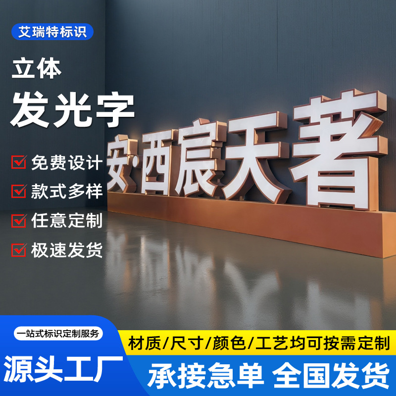 アクリル発光字ドア看板デスクトップ樹脂led水晶字ステンレス看板発光広告字