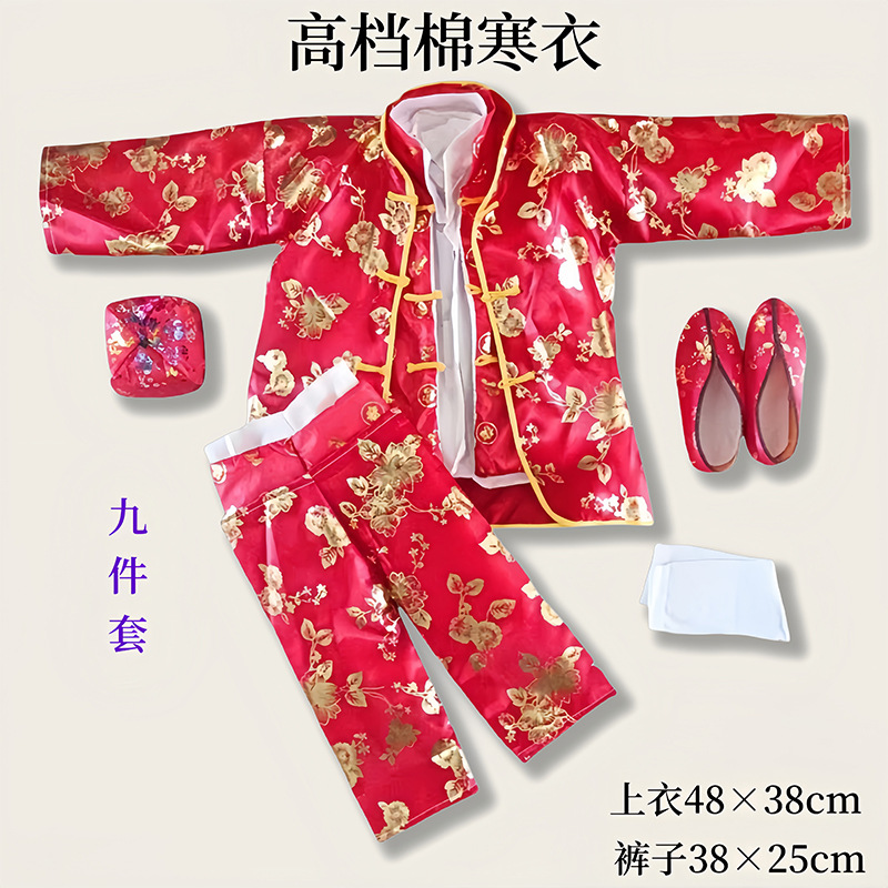 男女兼用四季服9点セット サテン綿入り寒衣 葬儀用十月一寒衣節 祭品 寿服
