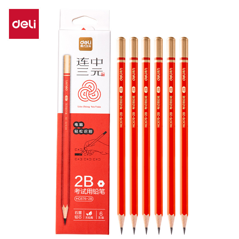 デリ HC676-2B 三元六角棒試験鉛筆 2B (混合) (6本/箱)