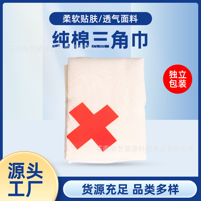 学生は白い厚い三角形の包帯の白い綿の三角タオルの赤い十字の包帯を訓練して三角タオルを訓練します。