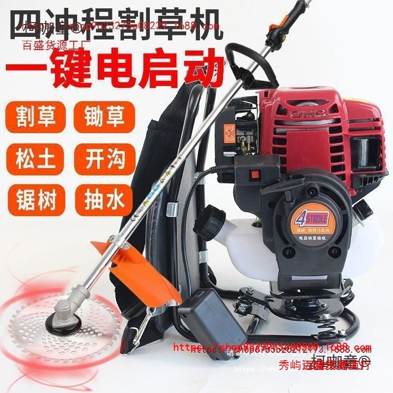 4ストローク電動スタートガソリン芝刈り機、背負式家庭用除草機、ワンクリックスタート草刈り機、松麦太保